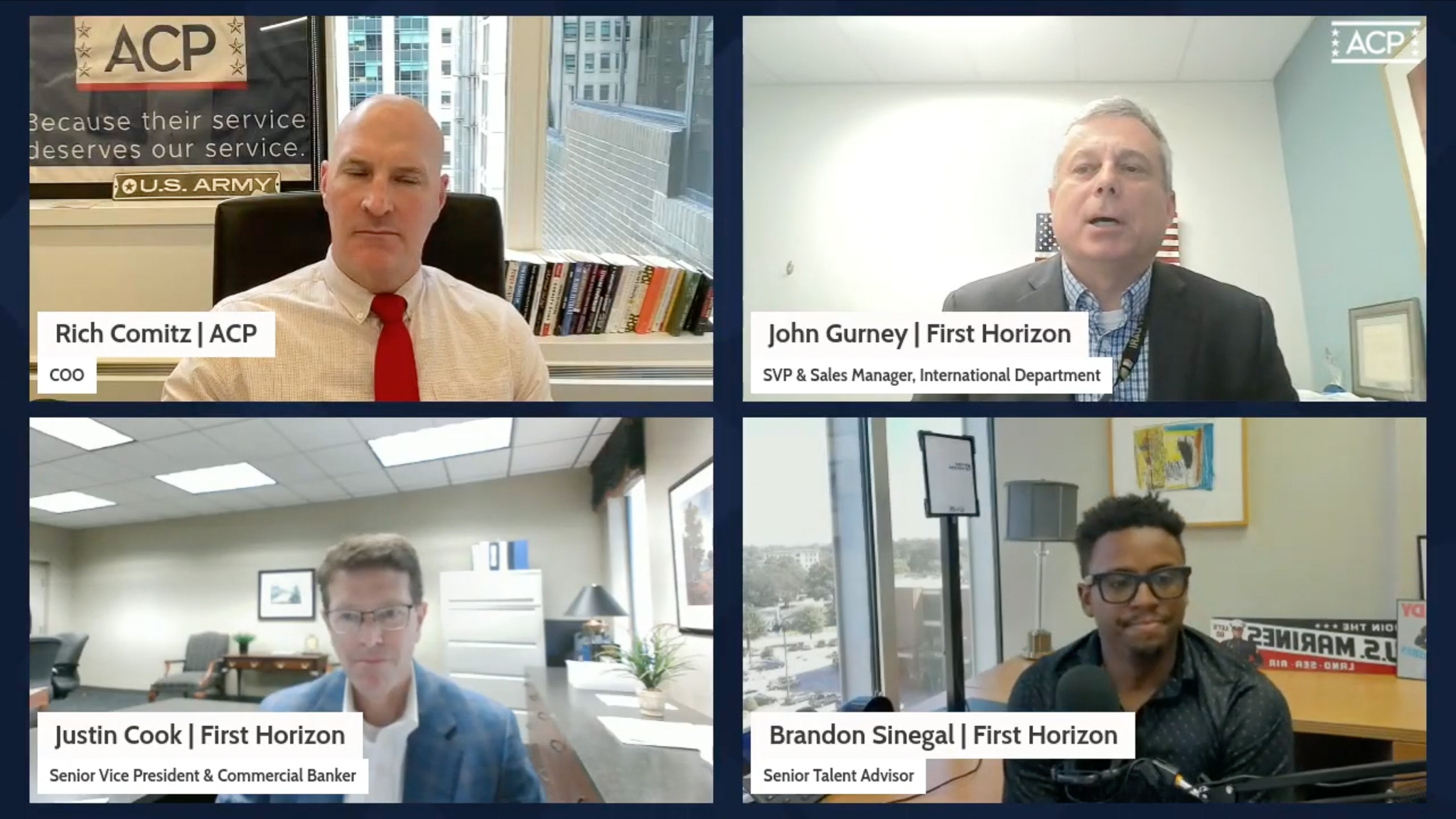 American Corporate Partners (ACP) is a national nonprofit organization connecting Veterans and Active-Duty Spouses with top professionals for one-on-one mentoring, career guidance, and networking opportunities. Our mission is to help them find not just jobs—but the right careers.