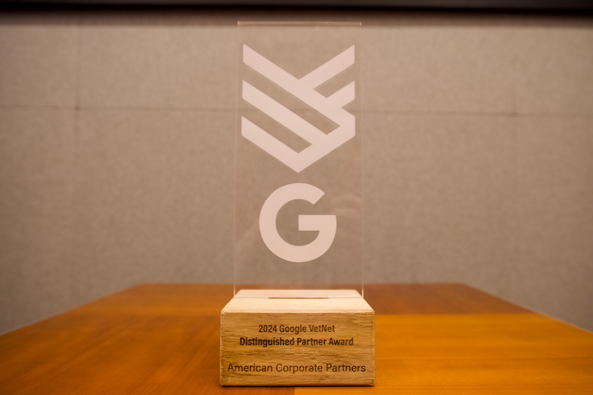 Read news: 2024 Google VetNet Distinguished Partner Award Recognizes American Corporate Partners (ACP) 2024 Google VetNet Distinguished Partner Award Recognizes American Corporate Partners (ACP) Press releases July 23, 2024