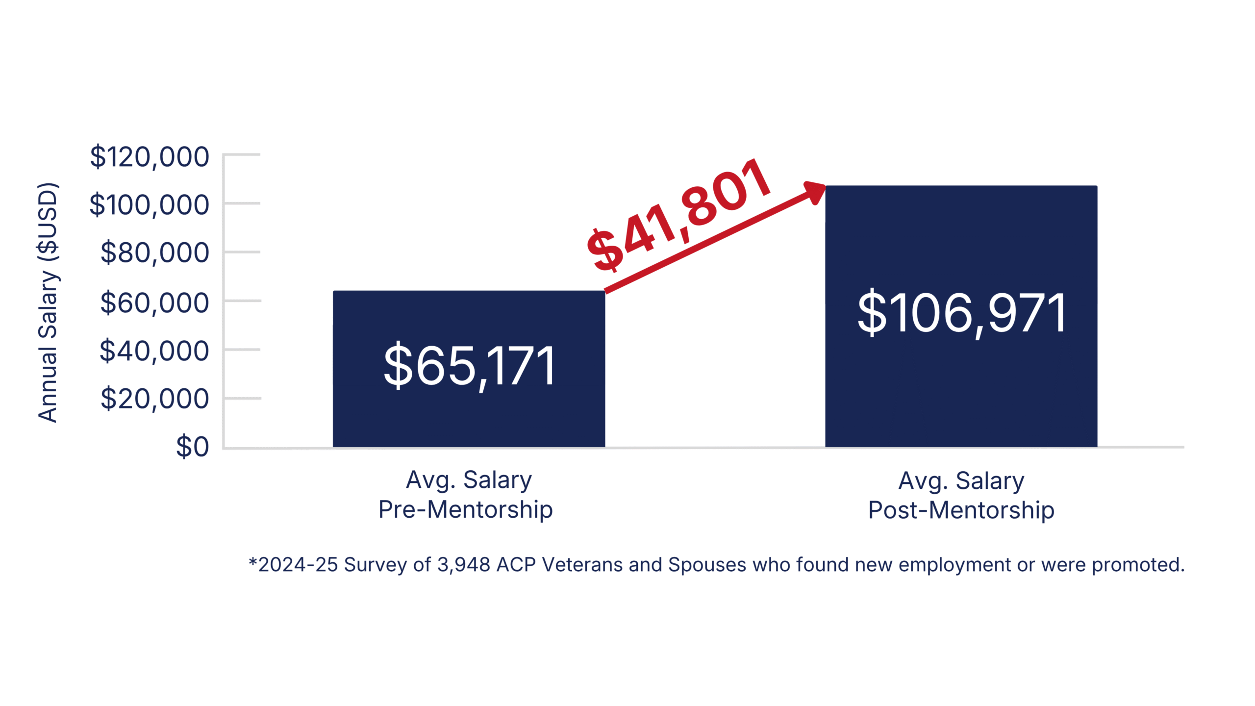 ACP Protégés who obtained meaningful employment in their mentorships earned an average incremental salary increase of over $40,000.